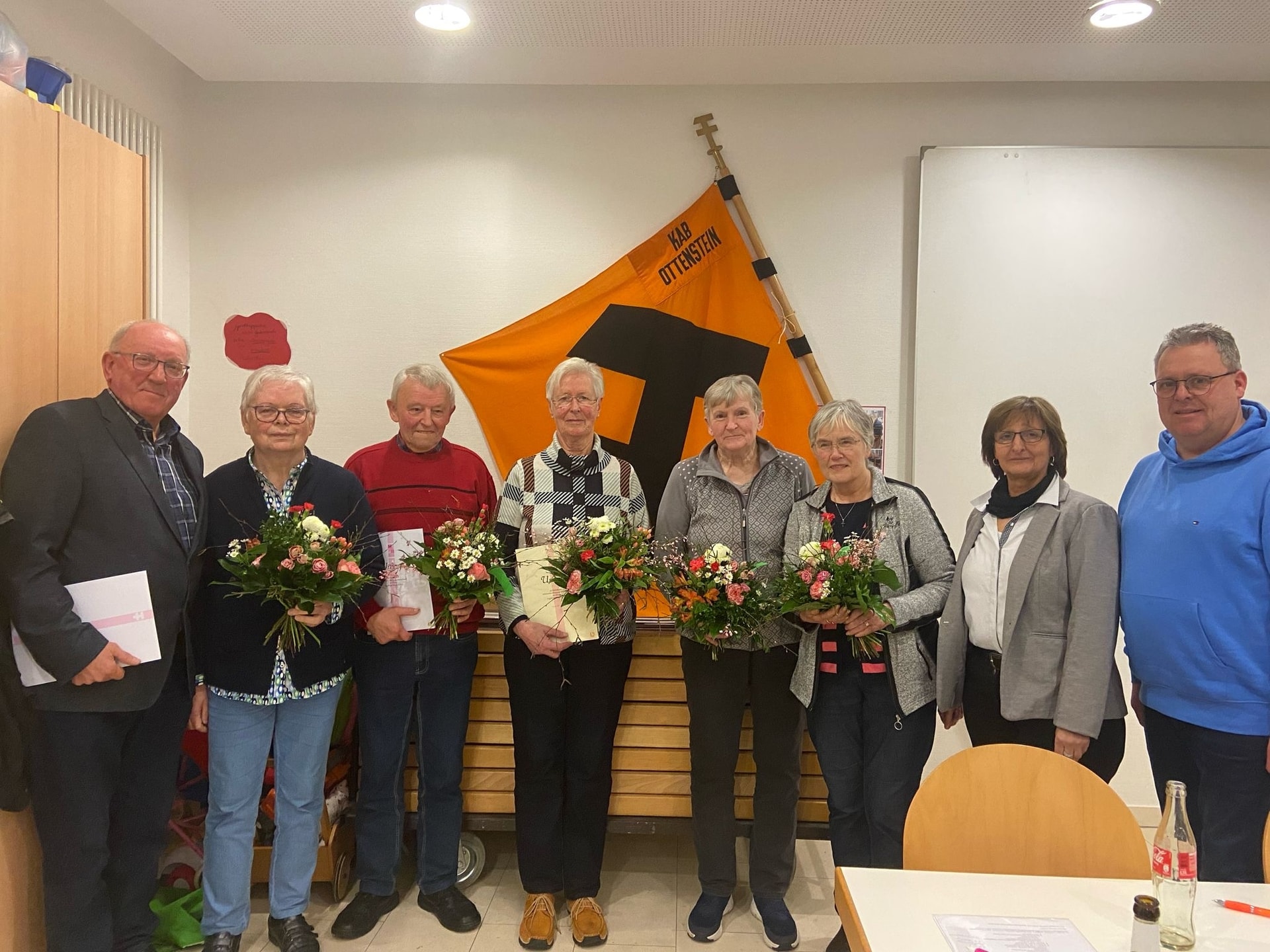 Auf der diesjährigen Generalversammlung der KAB Ottenstein wurden die Ehepaare Alfons und Maria Beckmann, Hans und Adele (fehlt auf dem Foto) Ostendarp für 40 Jahre Mitgliedschaft geehrt. Für 50 Jahre Mitgliedschaft wurde Walburga Lefering geehrt. Ebenfalls auf dem Foto Hildegard Schönebeck die nach 35 Jahren Vorstandsarbeit ausscheidet und Marlies Upgang die 21 Jahre dem Vorstand angehörte. Beide wurden von der Teamsprecherin Elisabeth Beuschold der KAB St. Josef und dem Kassierer des Fördervererins Franz Josef Heling verabschiedet.