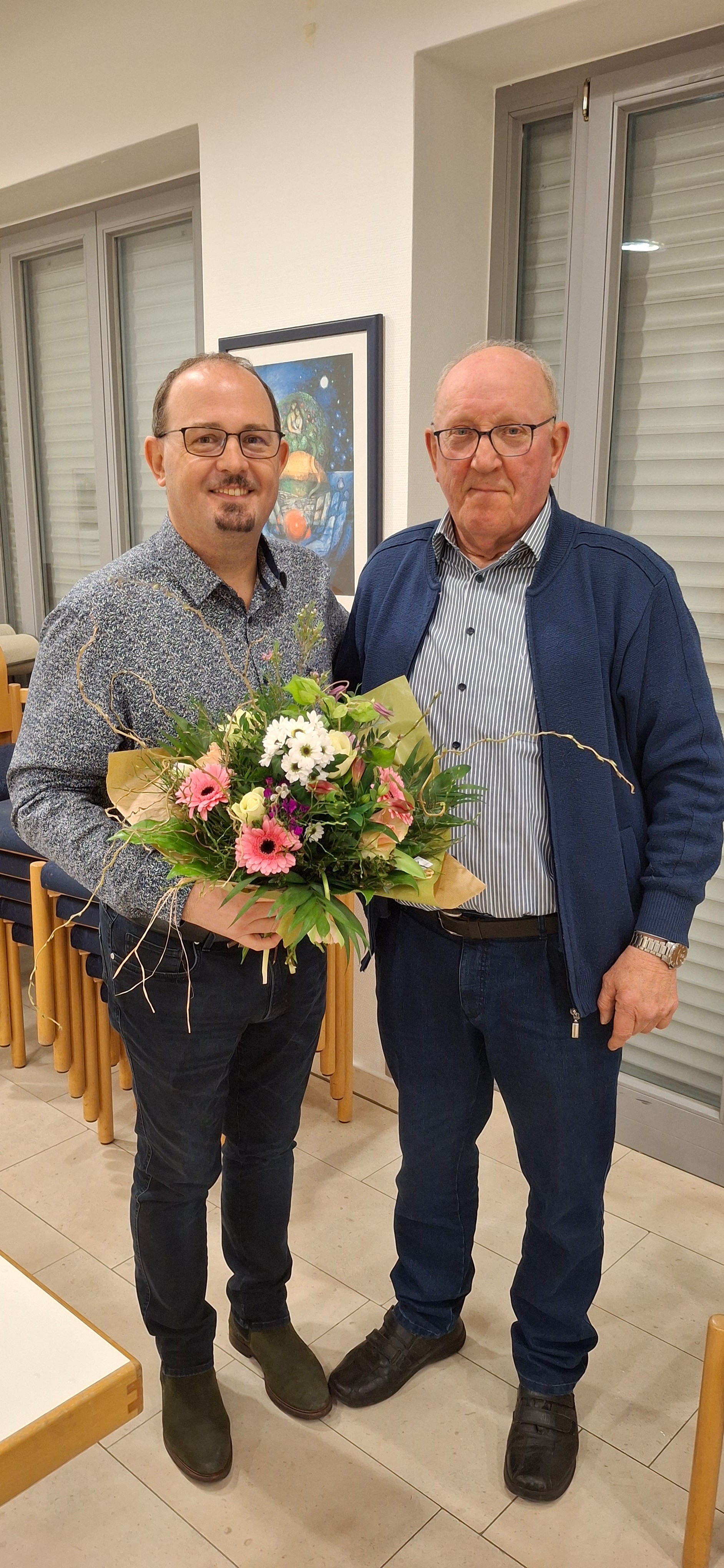 Bild: Alfons Beckmann von der Ottensteiner KAB (rechts) bedankt sich bei Dr. Adrian Treiyer (links).